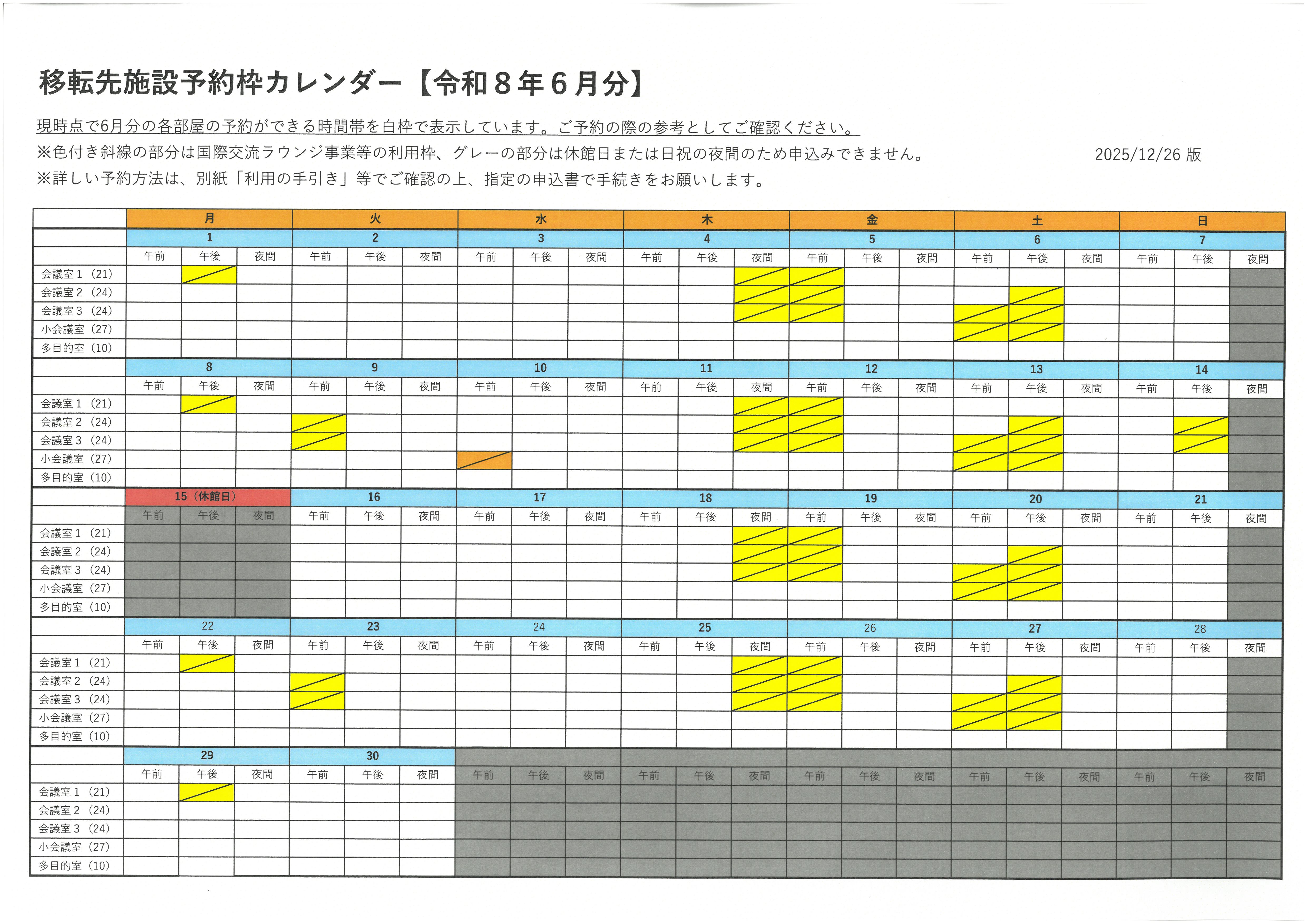 移転先施設予約枠カレンダー(参考)